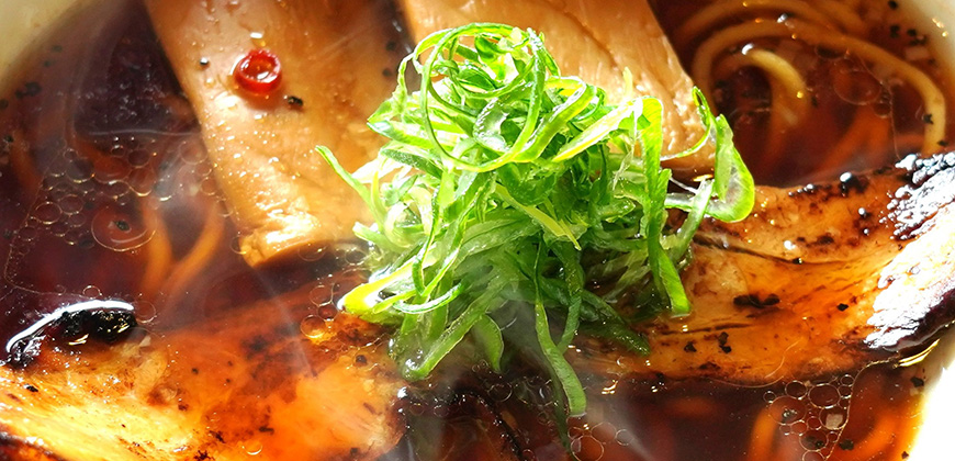 ガツンと生姜の効いたスープに数種類の醤油をブレンドしたかえしを使用しています。