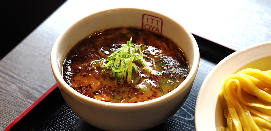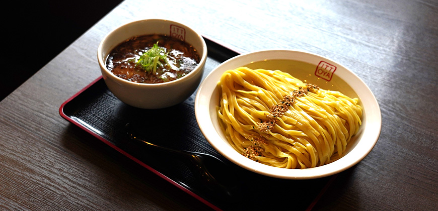 最近ではポピュラーなつけ麺の中でも、いっとうやで目を見張るのは幅広平手打ち麺。