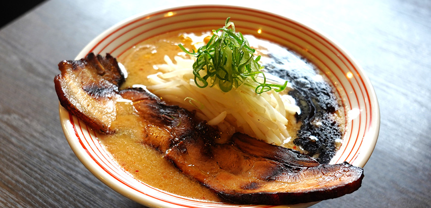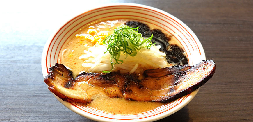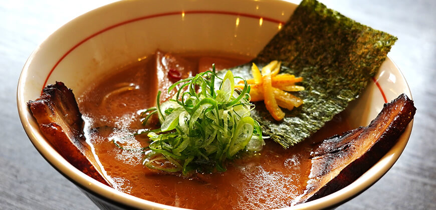 越後×信州の赤味噌と白味噌をブレンドした濃厚なスープにモチモチ食感の太麺を合わせた一杯です。