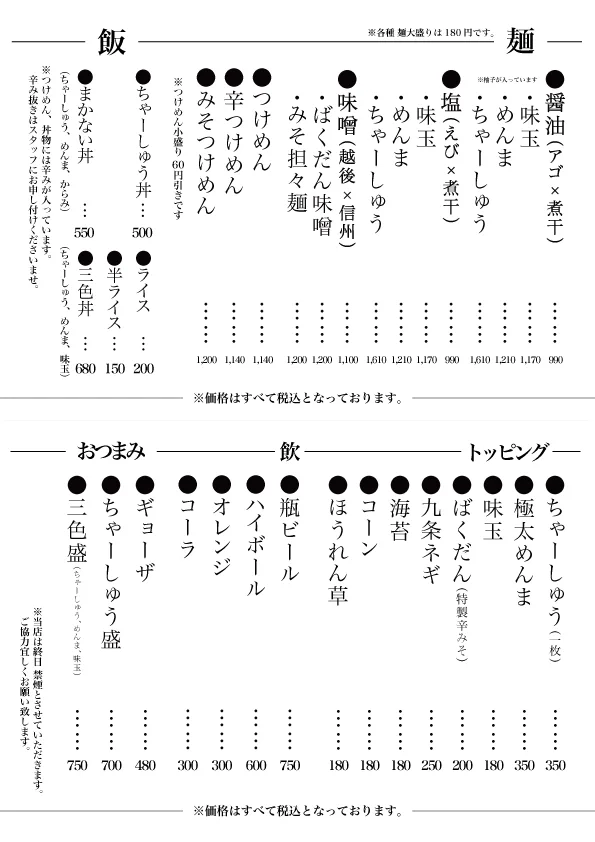 ほどなくして現在地である紫竹山に移転しましたが、創業時からの魚介と豚骨を合わせた当店のメニューは、おかげさまで今もたくさんのお客さまに愛されております。誠にありがとうございます。